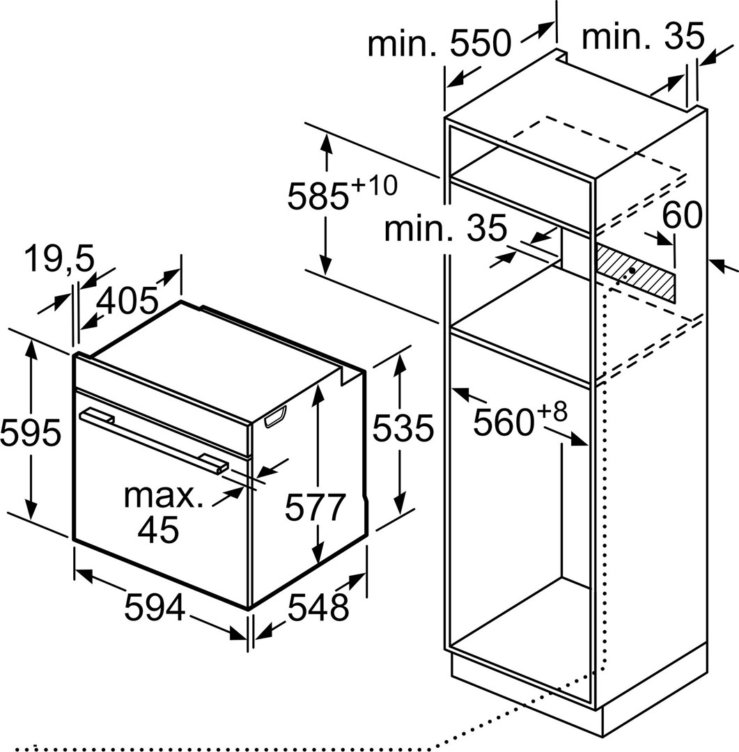 Głębokość przedziału instalacji 58,5 cm